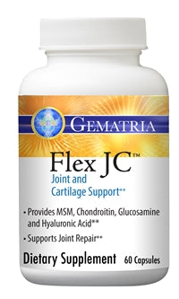 Gematria's Flex JC uses a blend of key anti-aging ingredients including MSM, Chondroitin, Glucosamine, and vegetarian sourced Hyaluronic Acid to creat a reliable supplement for relieving joint and skeletal pain while supporting the rebuilding and repairing the health of joints, ligaments, tendons, and cartilage while providing pain relief.